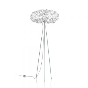 Forme regolari incastrate in un perfetto equilibrio di trasparenze e riflessi compongono il design di Clizia. La lampada riprende le forme della natura: è una nuvola che cattura la luce del sole delle prime ore del giorno e si carica di riflessi cangianti, è la chioma di un albero attraverso la quale la luce filtra e crea giochi con le ombre. Le versioni in cui è disponibile coniugano estetica e funzionalità: tutte sono dotate di un supporto magnetico che ancora la lampada alle superfici (plafoniera e sospensione) o alla base in metallo (da tavolo e piantana). Clizia è un paesaggio che ravviva gli ambienti senza invaderli con la sua presenza.