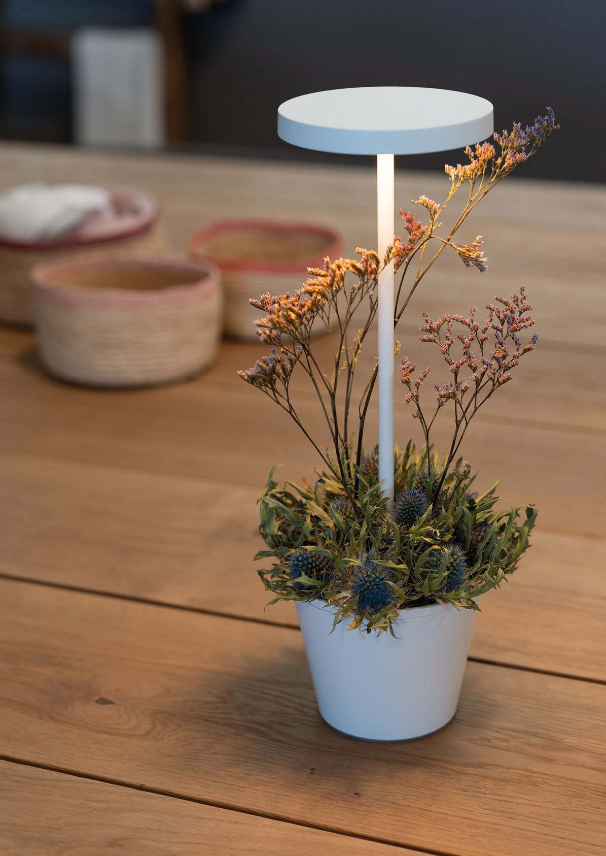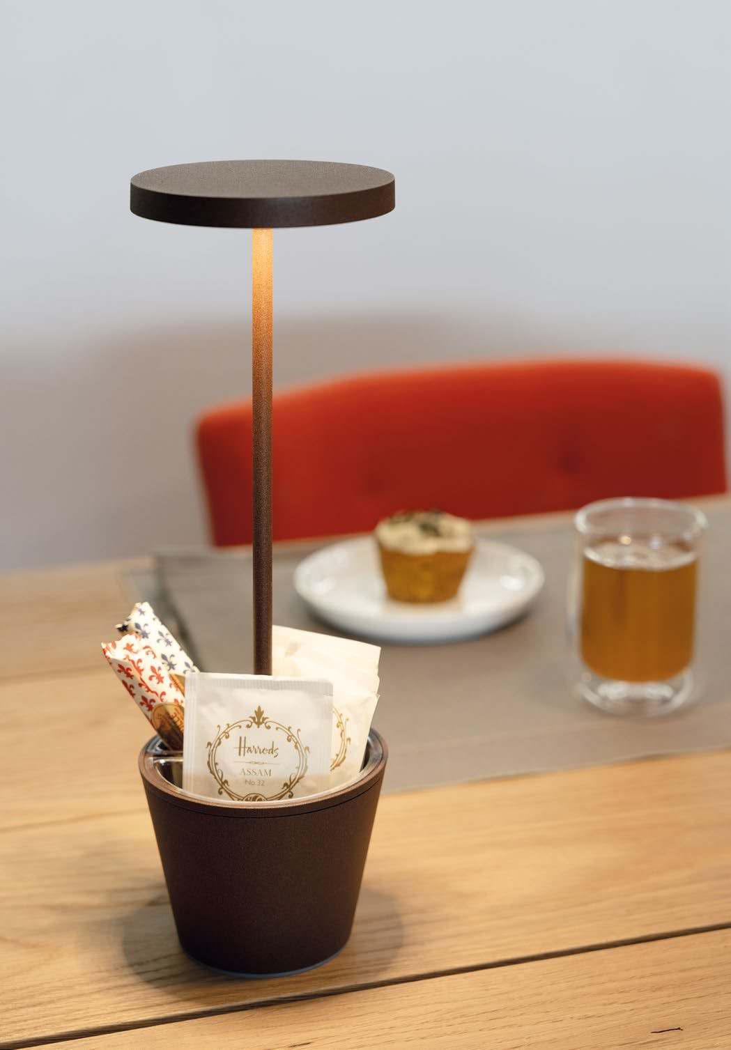 Poldina Reverso è una lampada a batteria portatile e ricaricabile da tavolo, con vaschetta contenitore multiuso. È dotata di sorgente luminosa a LED, touch dimmer e funzione di selezione della temperatura di colore della luce tra 2200K, 2700K e 3000K.