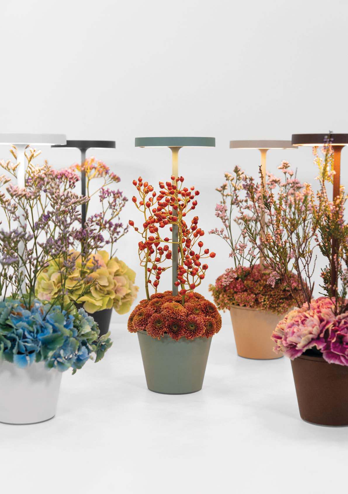 Il corpo è in pressofusione di alluminio verniciato nei colori bianco, corten, grigio scuro, verde salvia, sabbia. Lo schermo diffusore è in policarbonato satinato. La vaschetta contenitore multiuso (capacità 18cl) in resina termoplastica adatta al contatto alimentare (PET) è removibile e riutilizzabile.