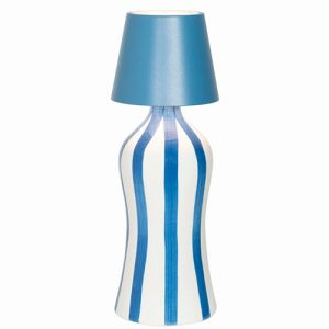 Lampada a batteria, portatile e ricaricabile, con tappo in silicone, che si può inserire su una bottiglia, trasformandola in un oggetto luminoso.